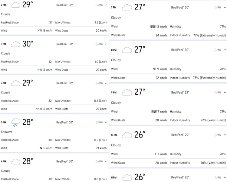 According to AccuWeather, there may be light rain about two hours before the match, i.e. around 5 pm. But the chances of rain during the match (starting at 7 pm local time) are said to be low. The sky will be cloudy, the temperature will be around 27-30 degrees Celsius, and the humidity will be around 70%. Some reports mention a 50-70% chance of showers or thunderstorms, especially before the match. Ground staff will have to be prepared—if it rains, the game may be delayed or shortened.